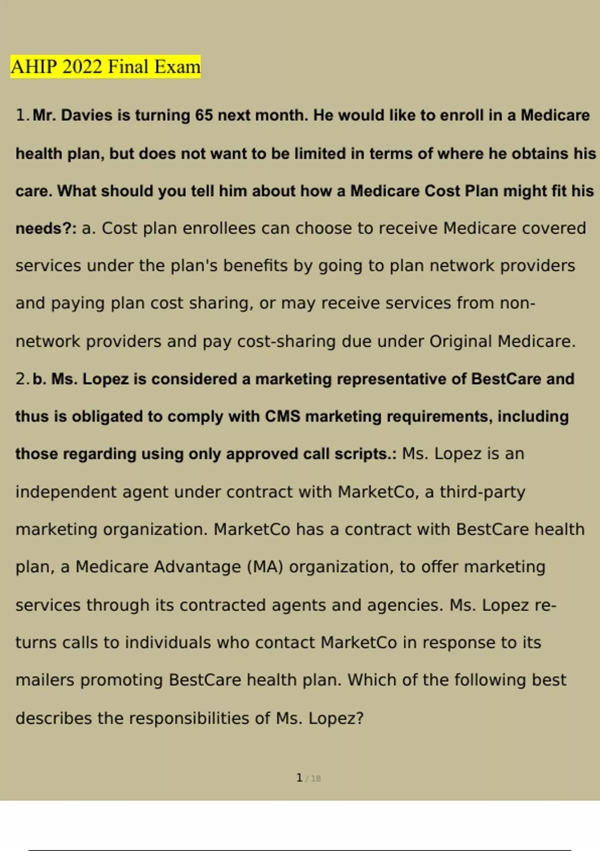 AHIP 2023 Final Exam Newest Questions and Answers (2023 / 2024) (Verified Answers)