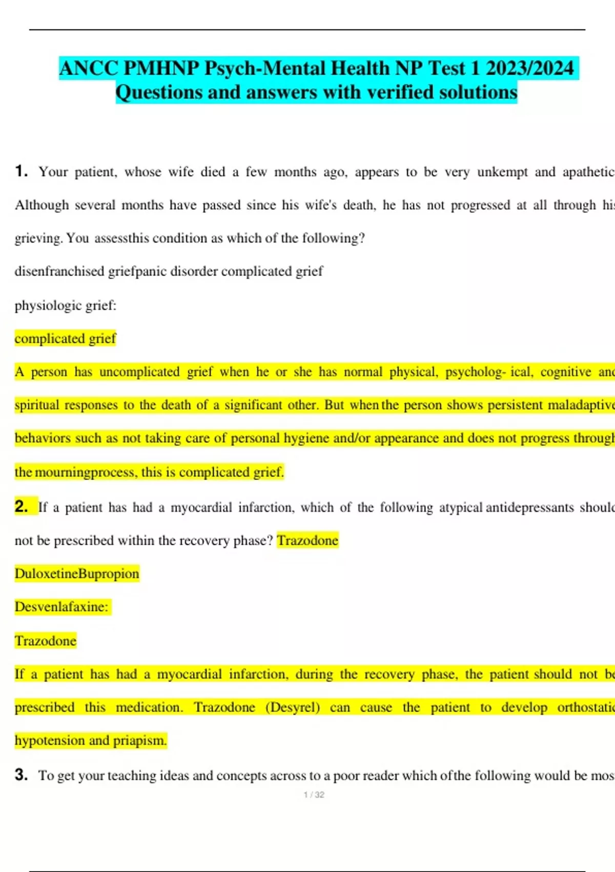 ANCC PMHNP Psych-Mental Health NP Test 1 2023/2024 Questions and answers with verified solutions