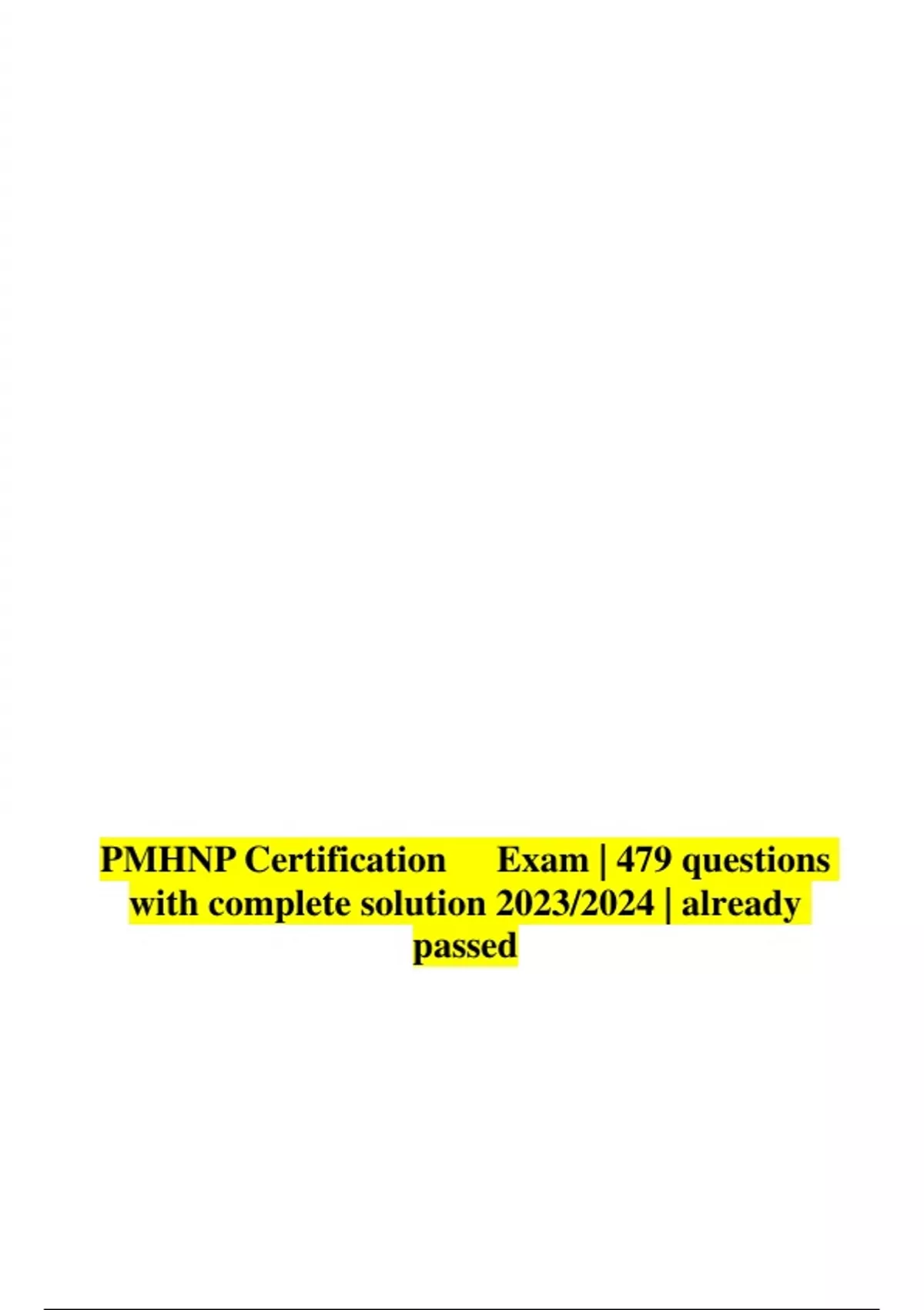 PMHNP Certification Exam | 479 questions with complete solution 2023/2024 | already passed