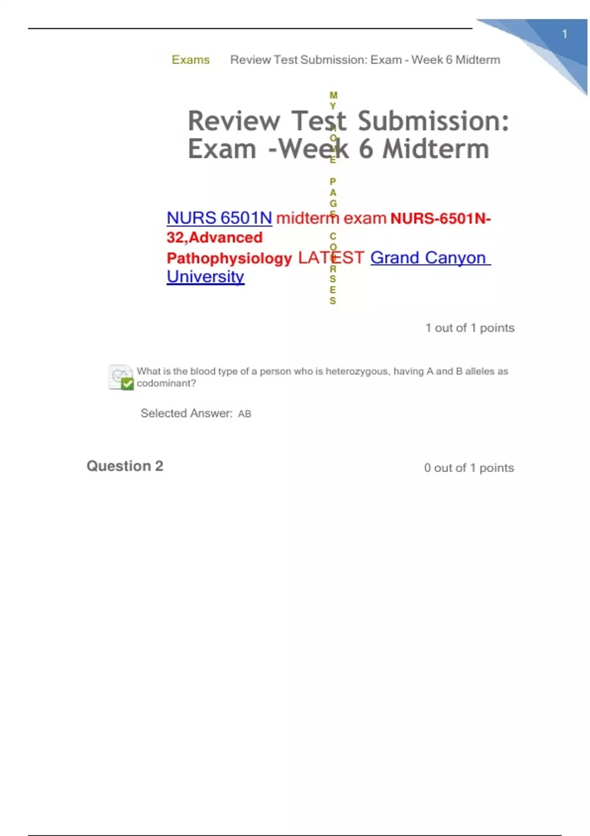 NURS 6501N midterm exam NURS-6501N-32,Advanced EXAM