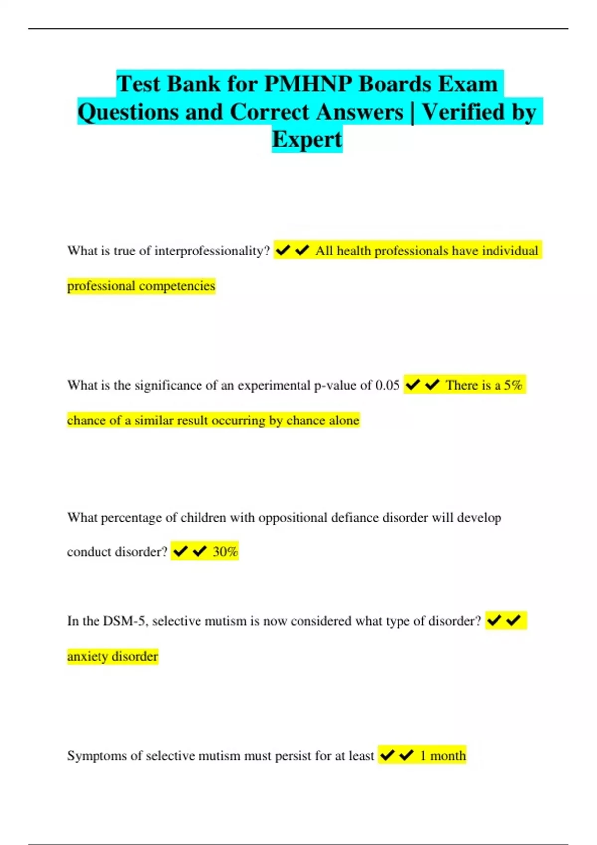 Test Bank for PMHNP Boards Exam Questions and Correct Answers | Verified by Expert