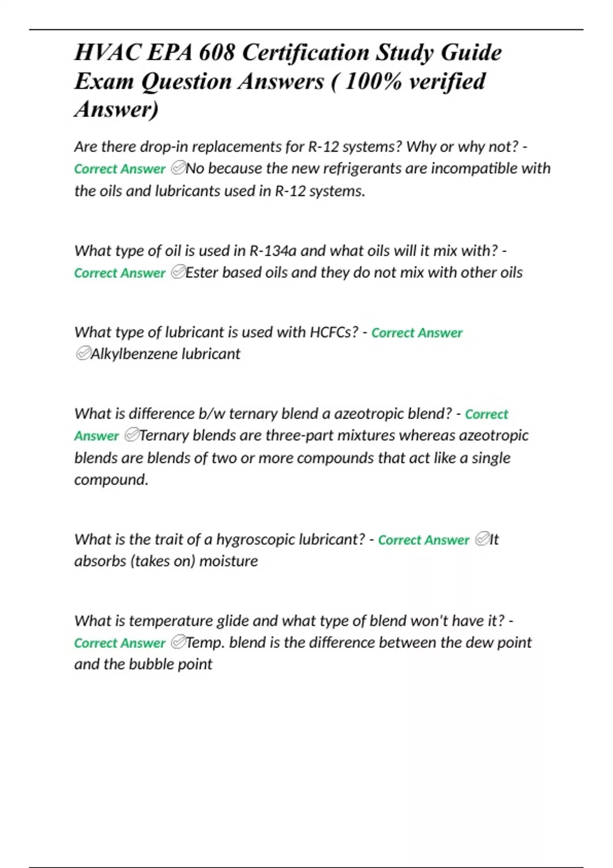 - HVAC EPA 608 Certification Study Gui Exa Questi
