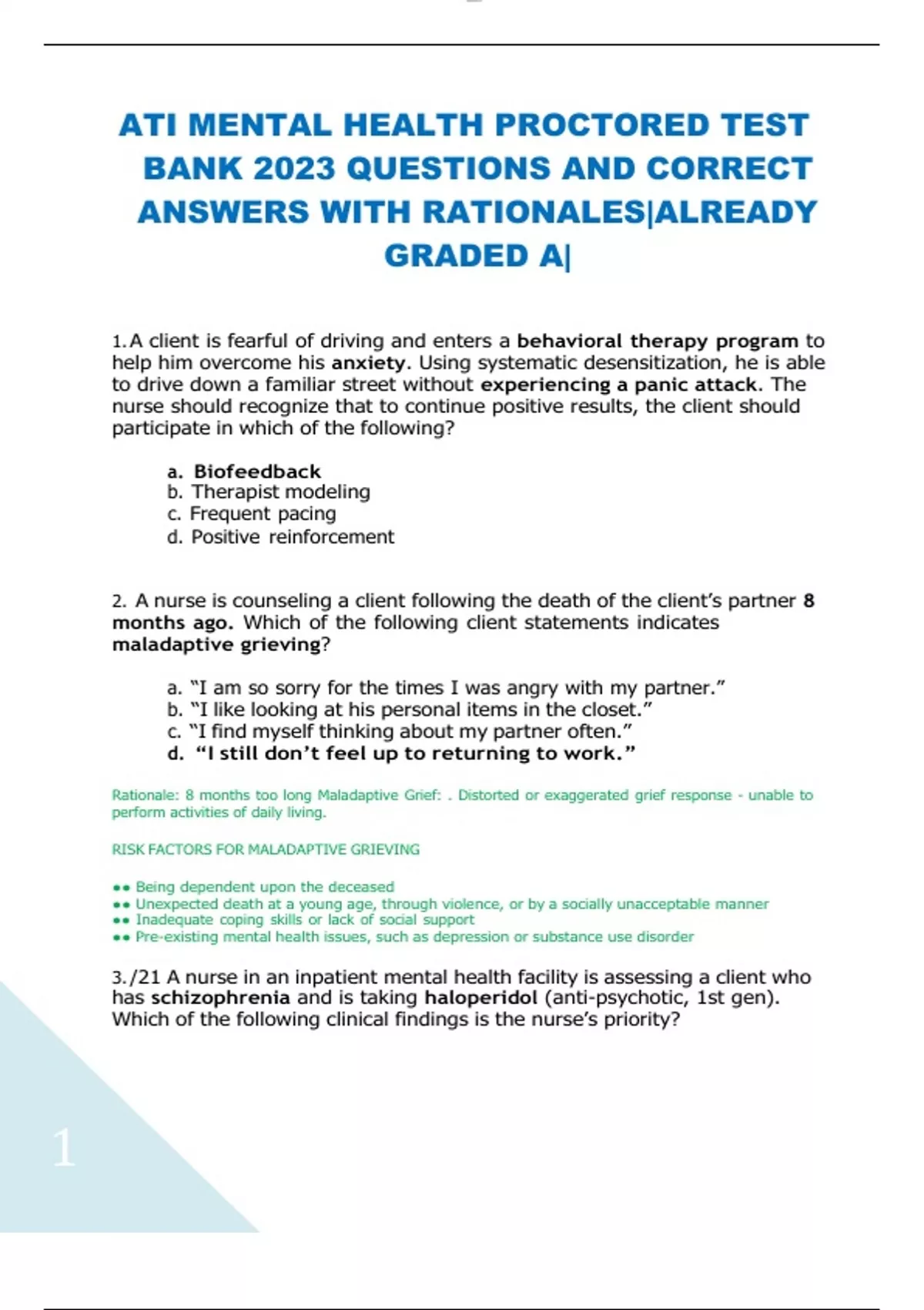 1. A client is fearful of driving and enters a behavioral therapy program to