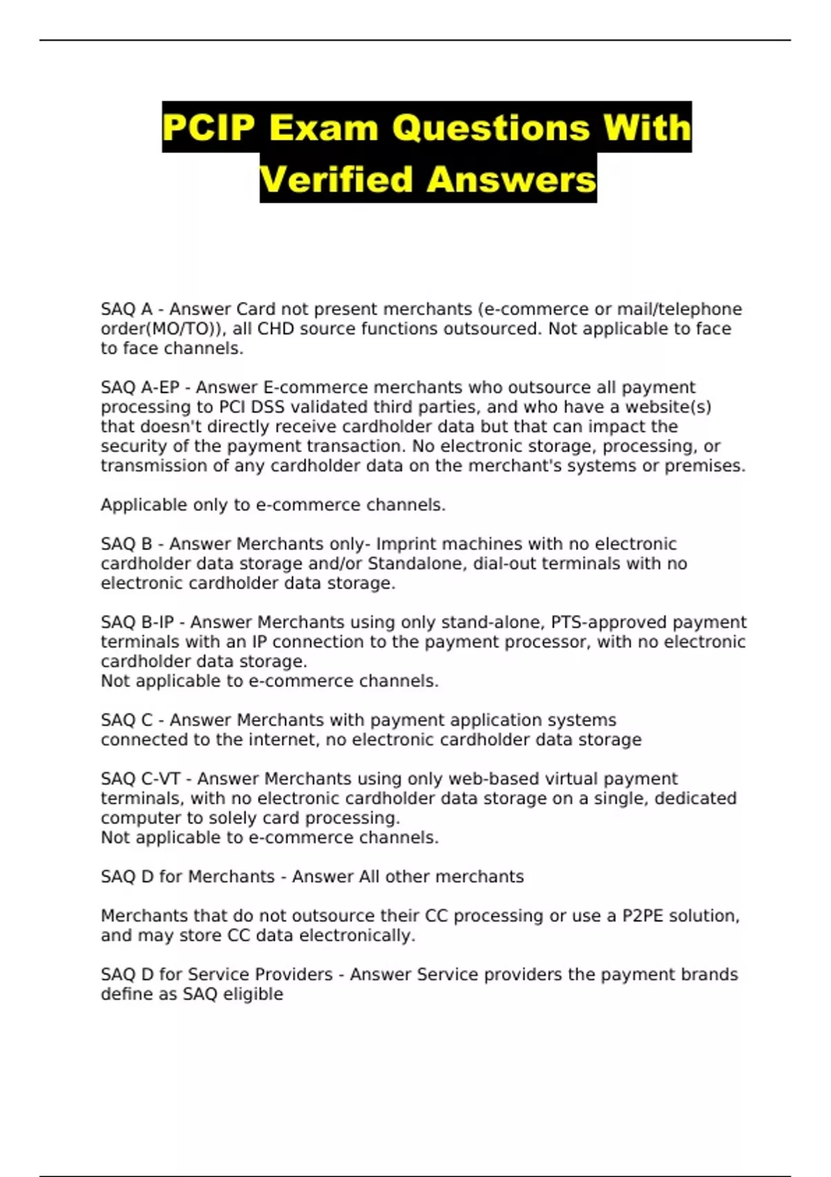 PCIP Exam Questions With Verified Answers