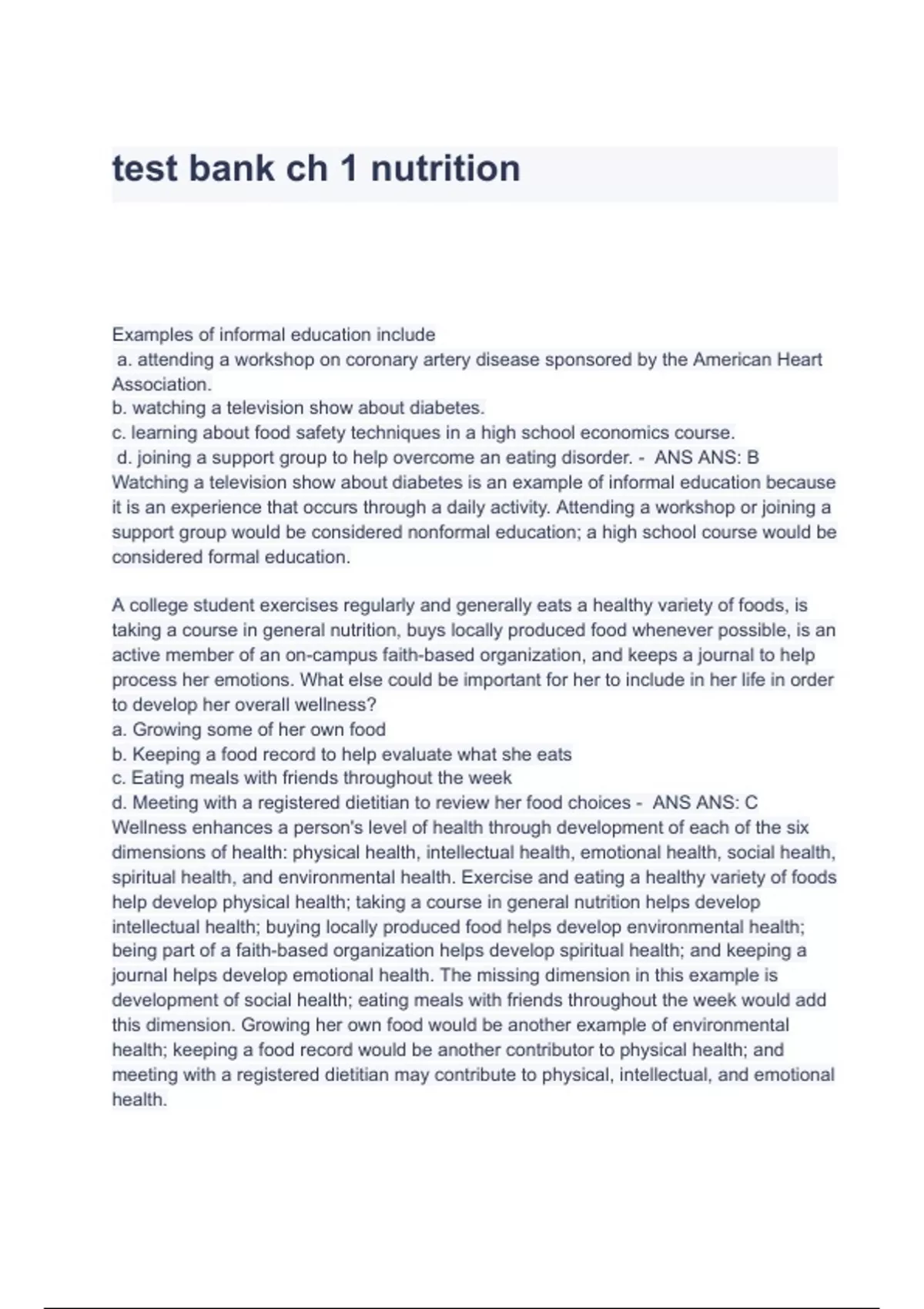 Test Bank For Basic Nutrition Diet Therapy 16th edition Questions & Answers (+ GRADED)