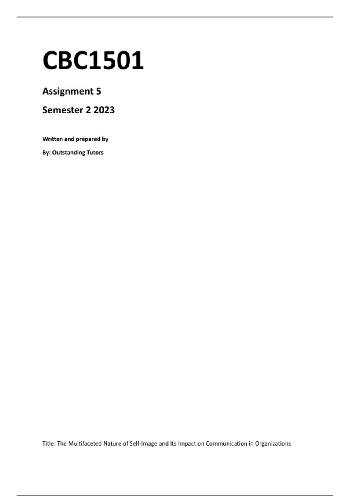 This document contains the solution to CBC1501 assignment 5 for 2023, using this document will ensure that you get a 90% plus pass mark, guaranteed trusted solution.