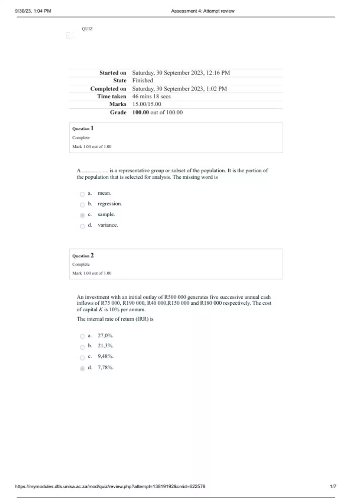 https://mymodules.dtls.unisa.ac.za/mod/quiz/review.php?attempt=13819192&cmid=622578 1/7