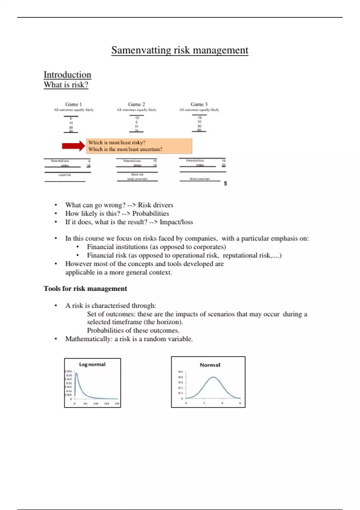 • Financial risk (as opposed to operational risk, reputational risk,....)