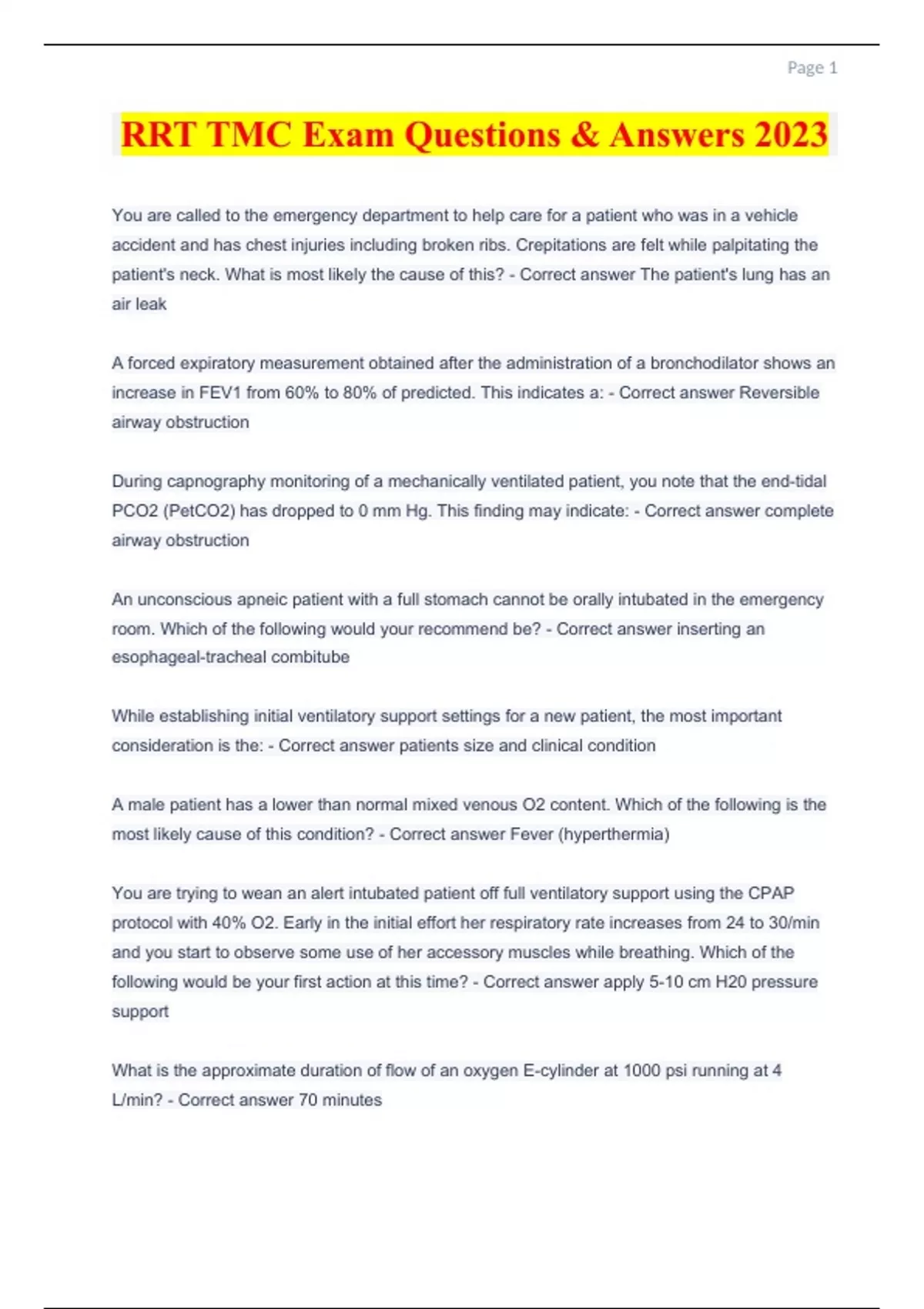 RRT TMC Exam Questions & Answers 2023RRT TMC Exam Questions & Answers 2023RRT TMC Exam Questions & Answers 2023