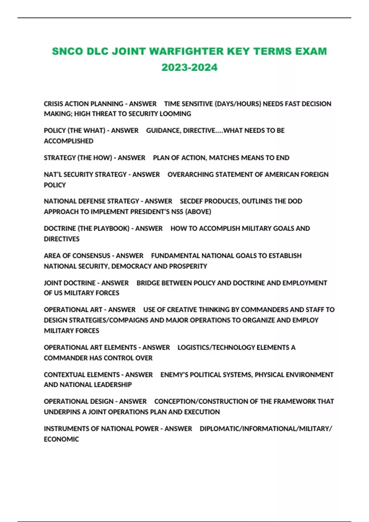 SNCO DLC JOINT WARFIGHTER KEY TERMS EXAM ...