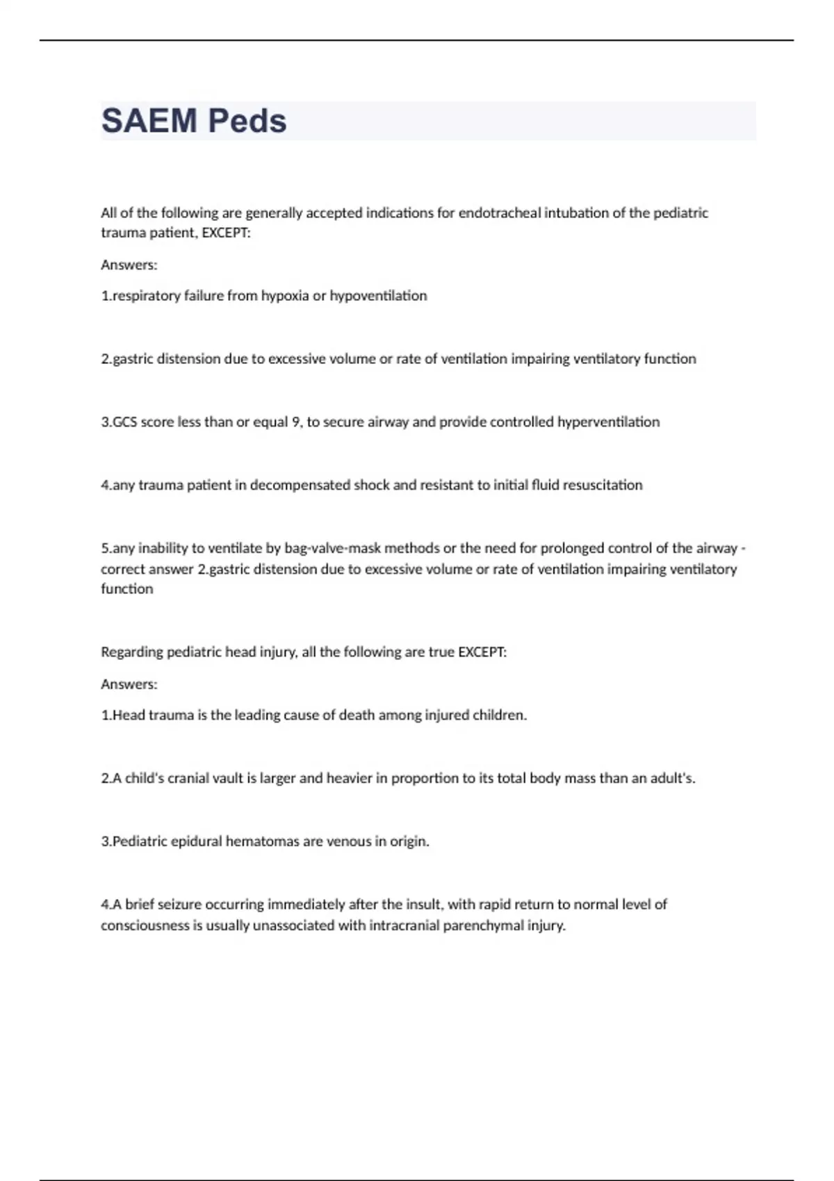 SAEM Peds questions with complete solution 2023