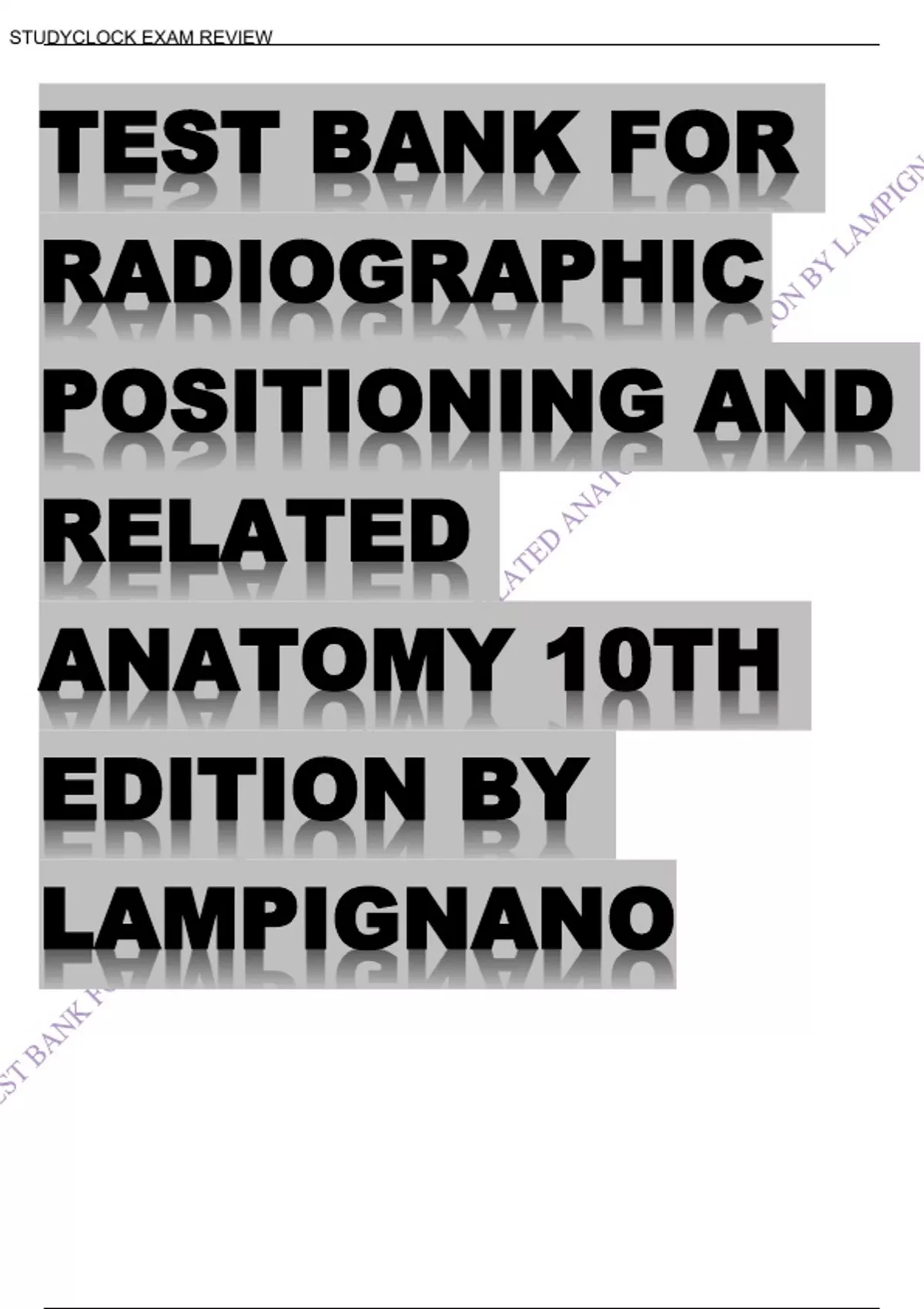 Test Bank for Bontragers Textbook of Radiographic Positioning and Related Anatomy 10th Edition by Lampignano.