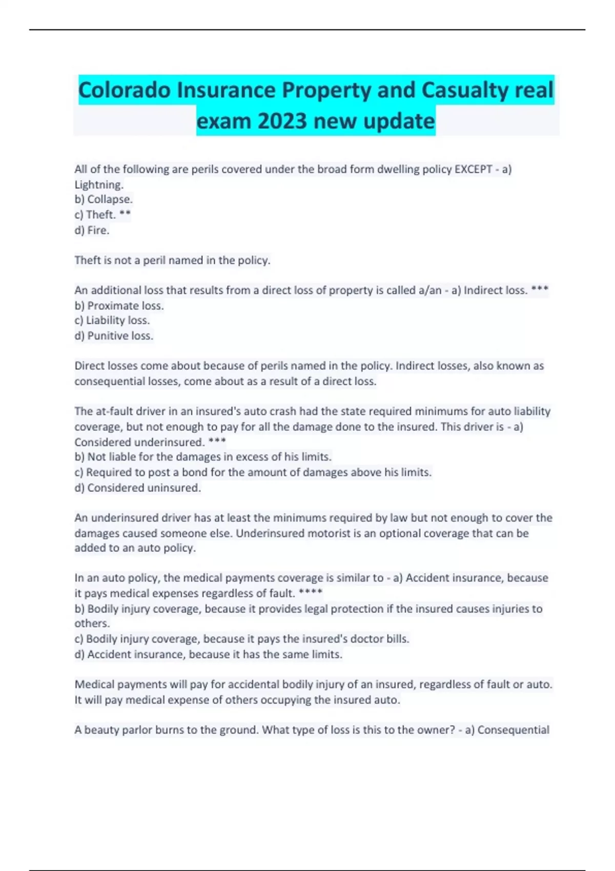 Colorado Insurance Property and Casualty real exam 2023 new update