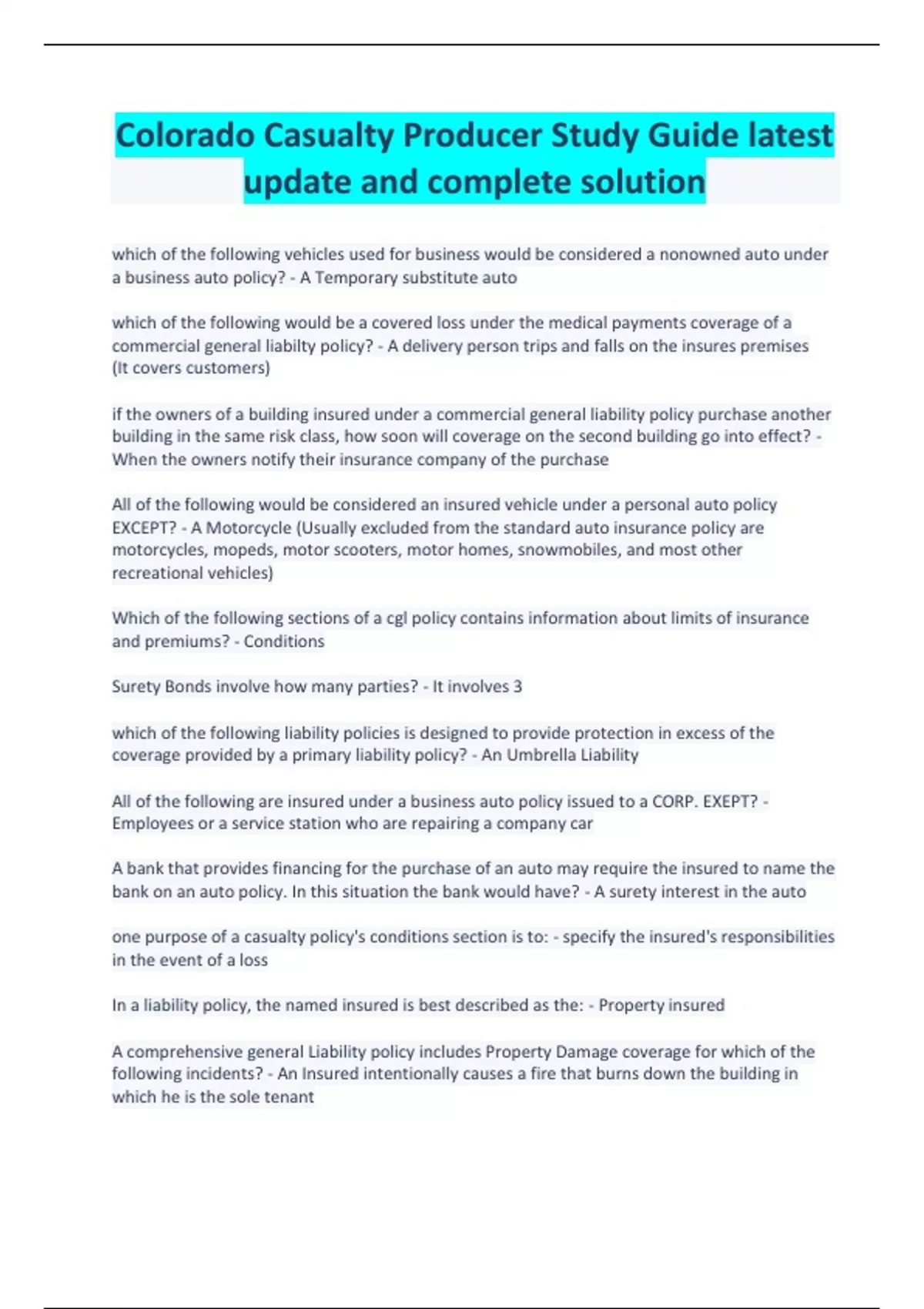 Colorado Casualty Producer Study Guide latest update and complete solution