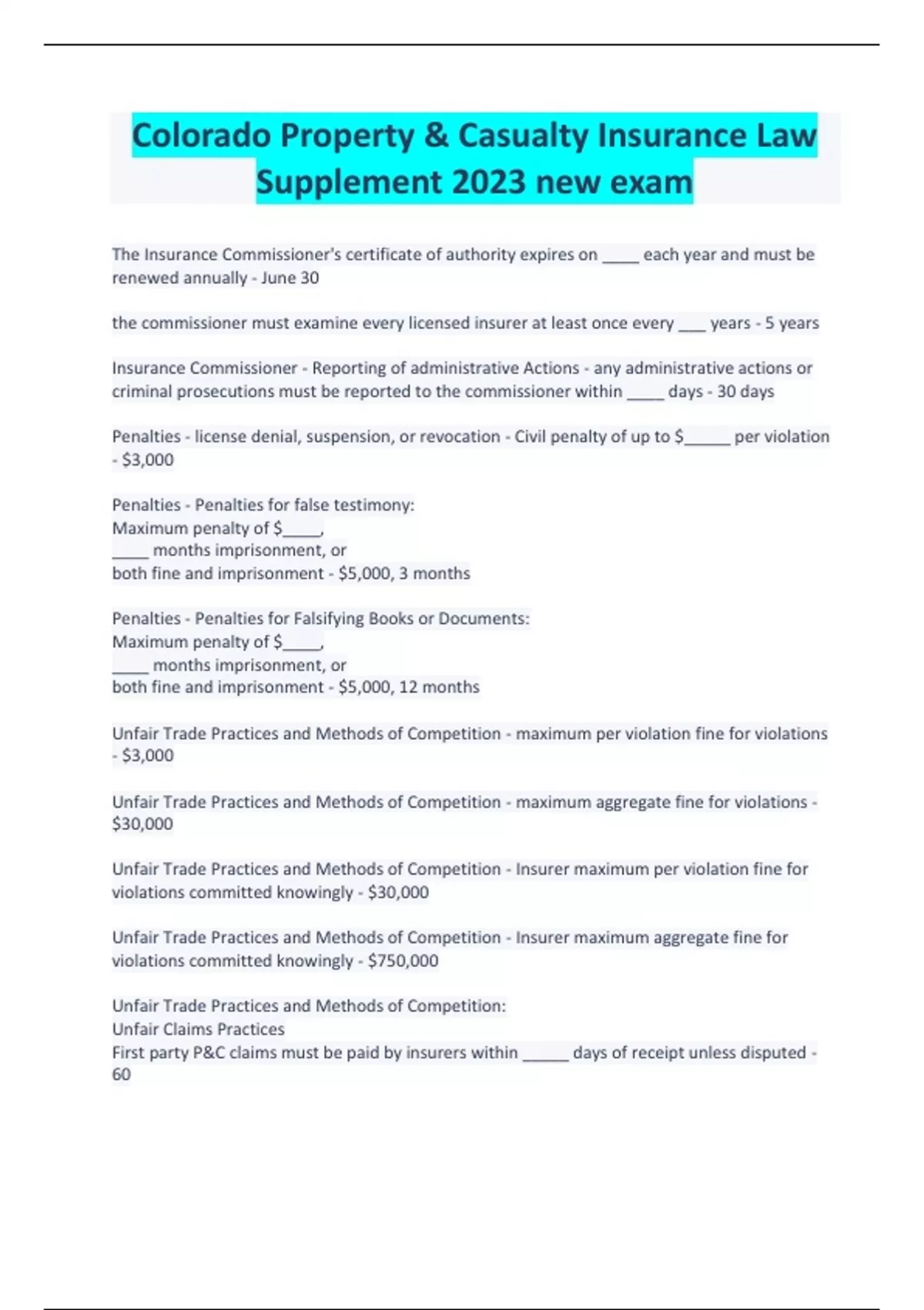 bundled solutions for Colorado Property & Casualty Insurance |2023 latest update with verified A+ solutions |