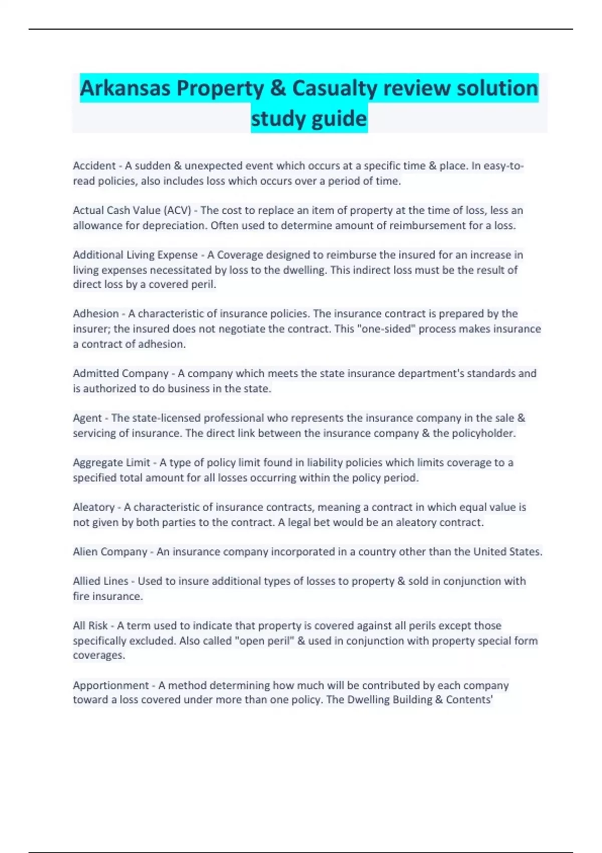 Arkansas Property and Casualty combined course exams with 100$ scored in each solution | all covered course|