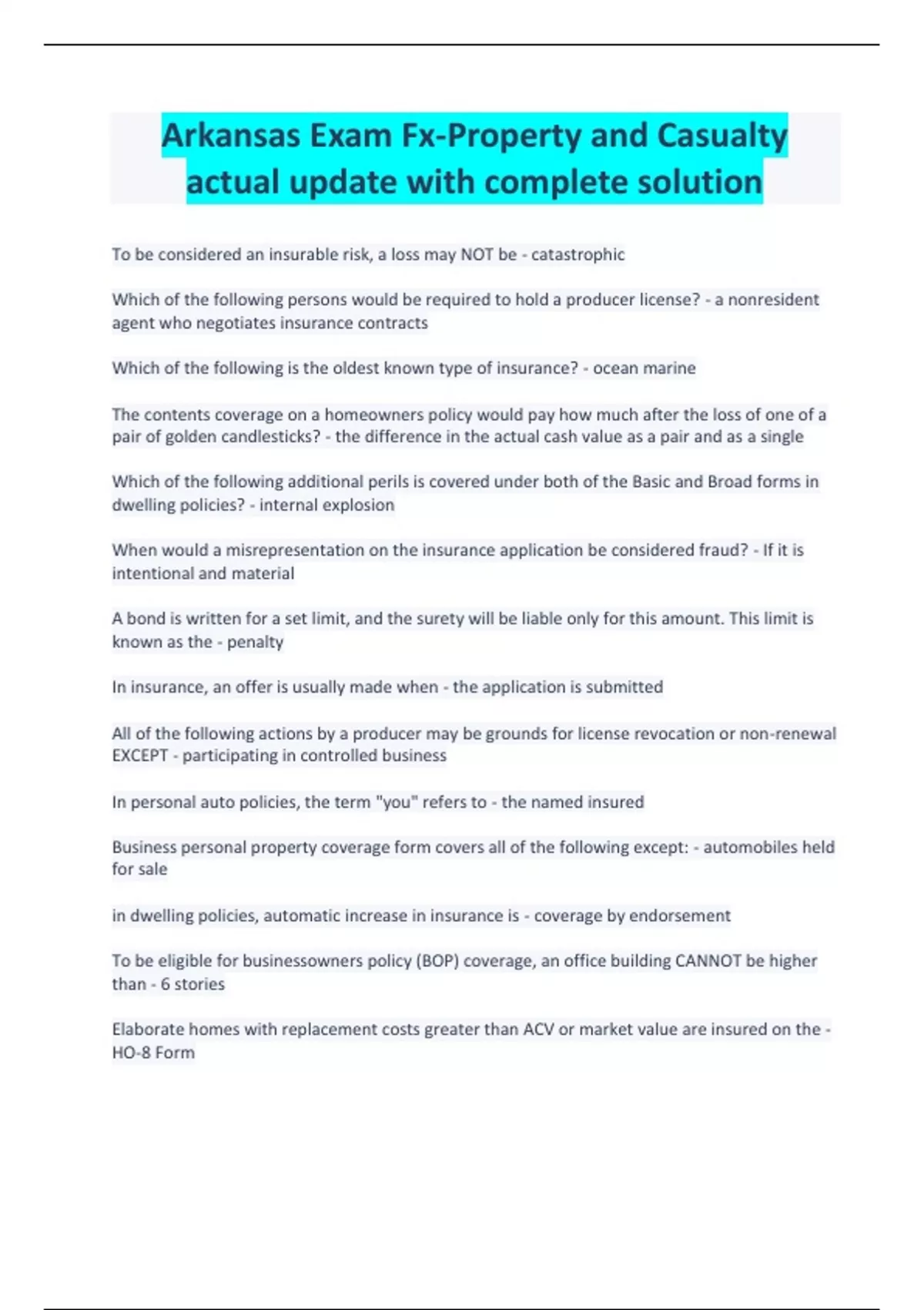 Arkansas Exam Fx-Property and Casualty actual update with complete solution