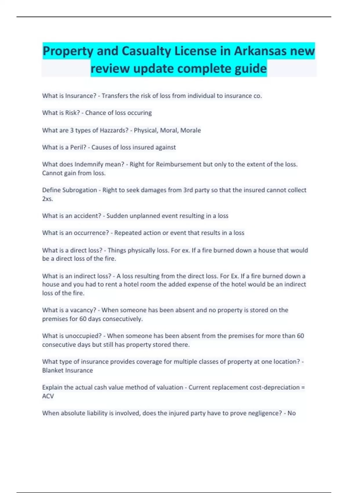 Arkansas Property and Casualty combined course exams with 100$ scored in each solution | all covered course|