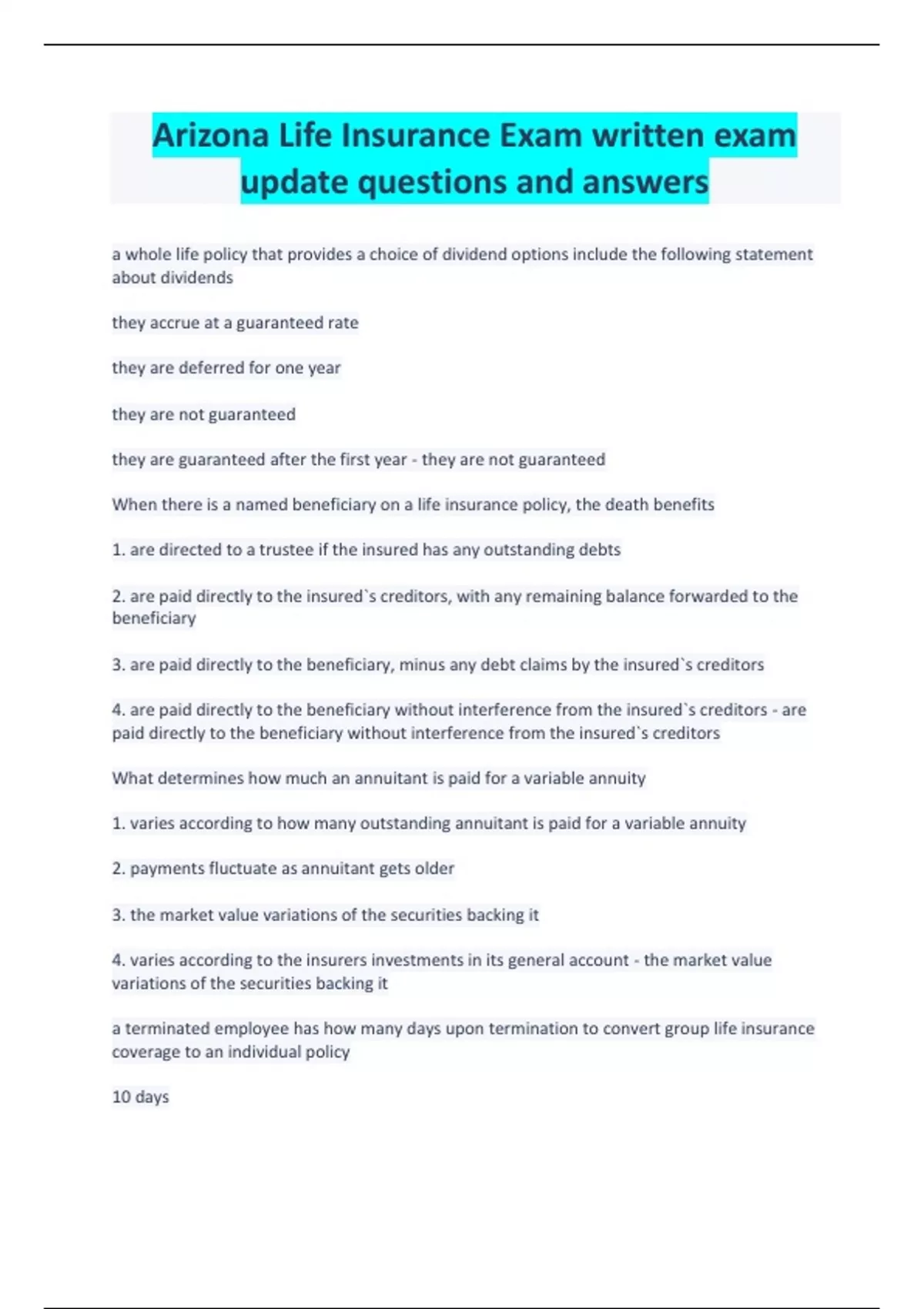 Arizona Life Insurance and Health Insurance with all practice passed exams with verified A+ grade