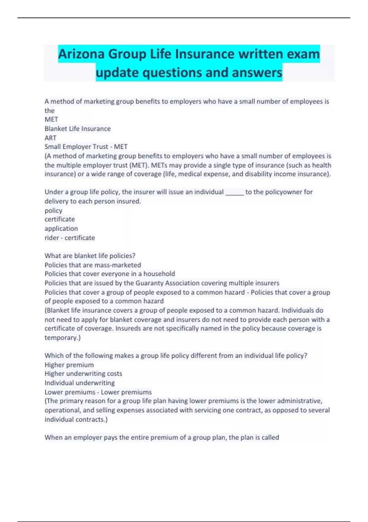 Arizona Life Insurance and Health Insurance with all practice passed exams with verified A+ grade