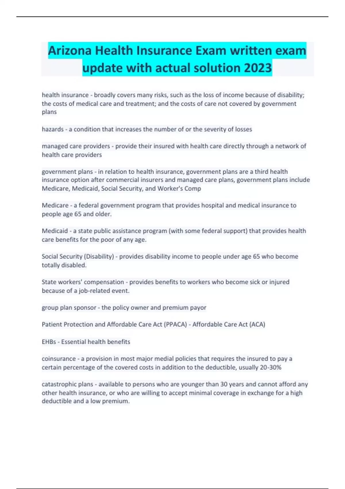 Arizona Health Insurance Exam written exam update with actual solution 2023