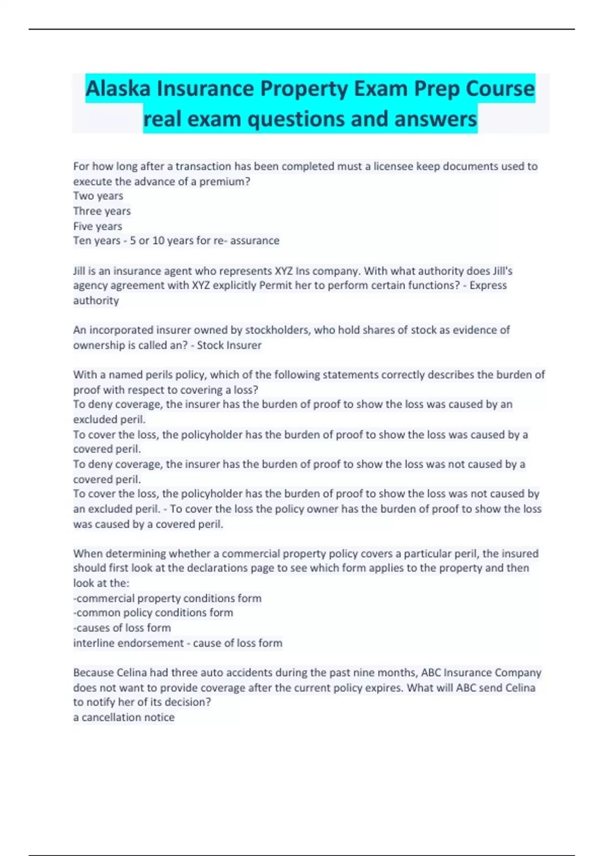 Alaska Insurance Property Exam Prep Course real exam questions and answers