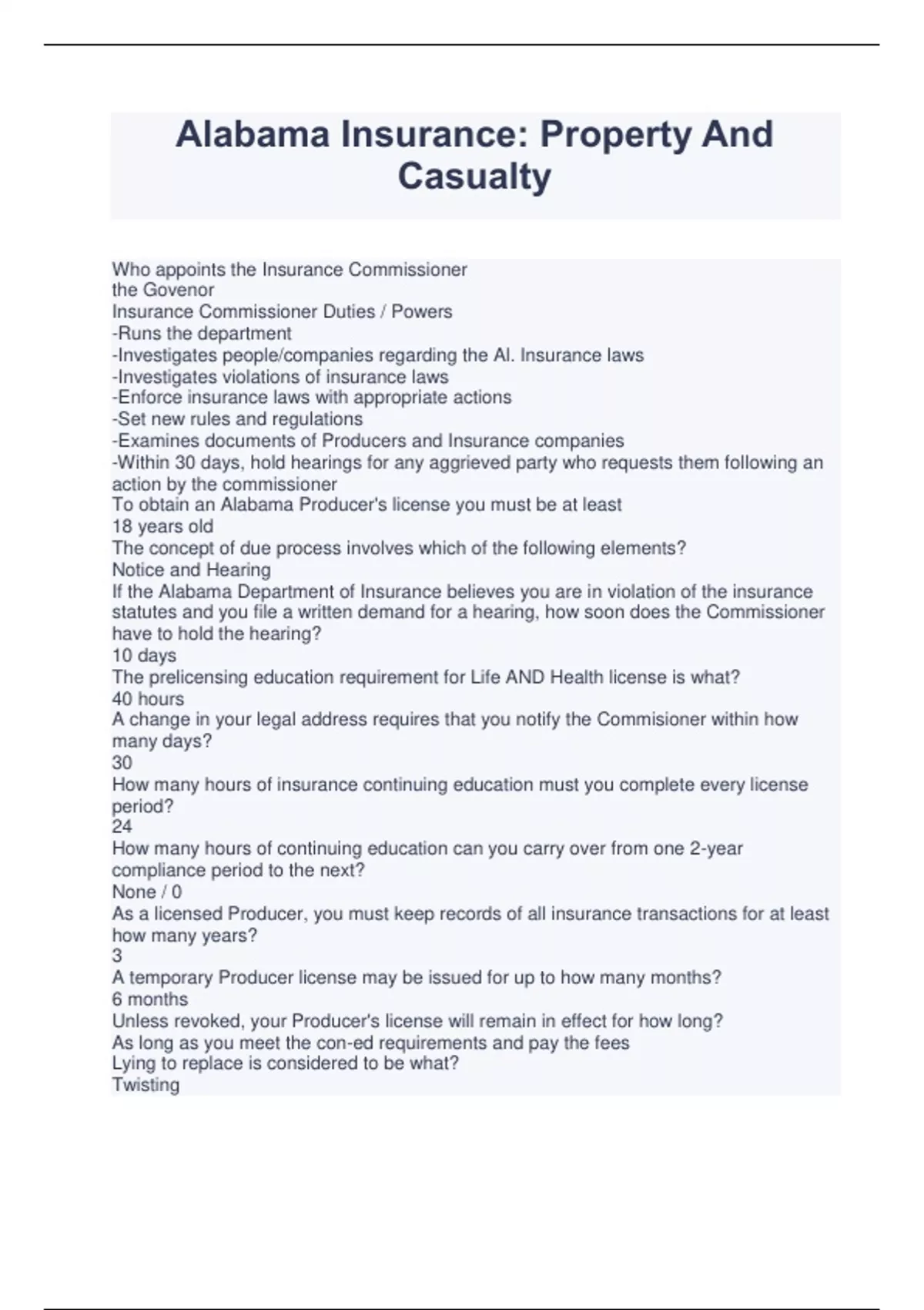 ALABAMA PROPERTY AND CASUALTY INSURANCE BUNDLED MATERIAL GUIDE 2023 |100% SCORED ACTUAL EXAMS