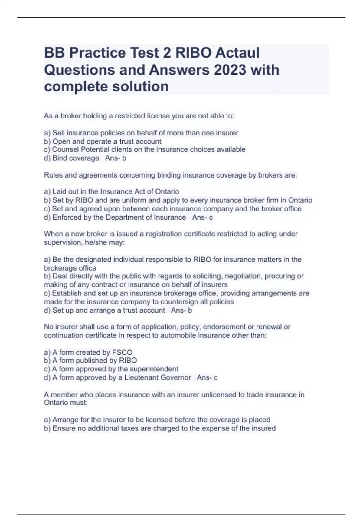 BB Practice Test 2 RIBO Actaul Questions and Answers 2023 with complete solution