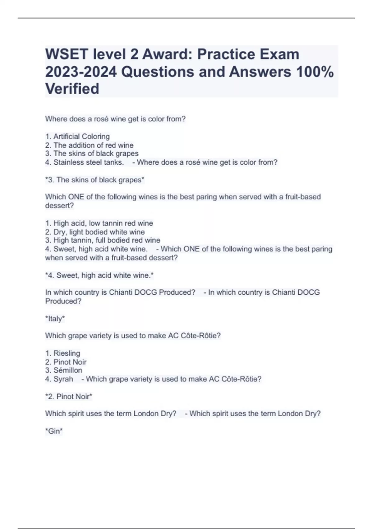 wset level 2 award practice exam questi