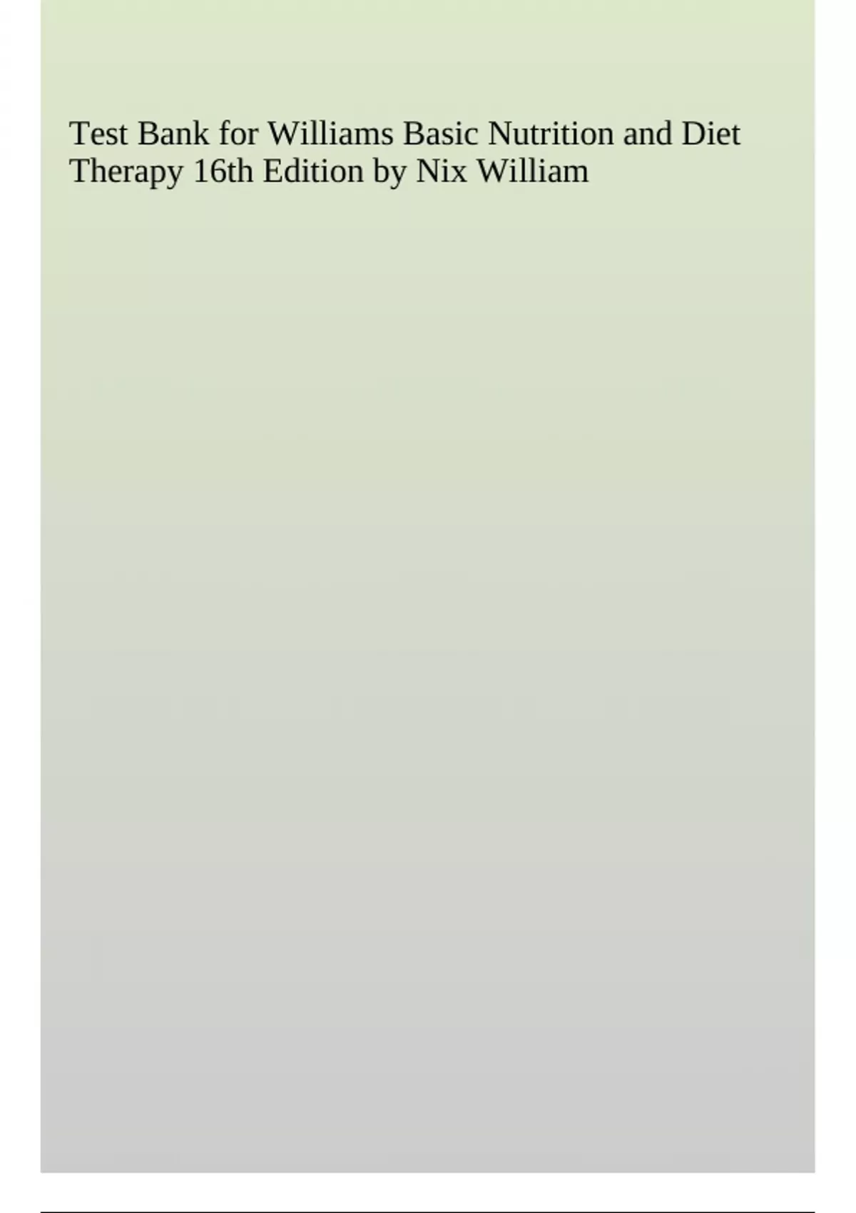 Test Bank For Basic Nutrition Diet Therapy 16th edition