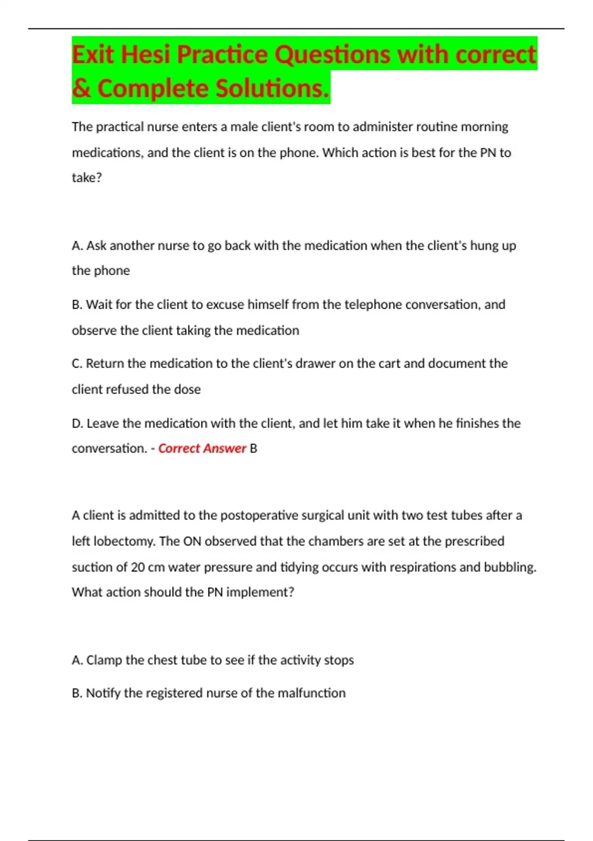 exit hesi practice questions with correct comple