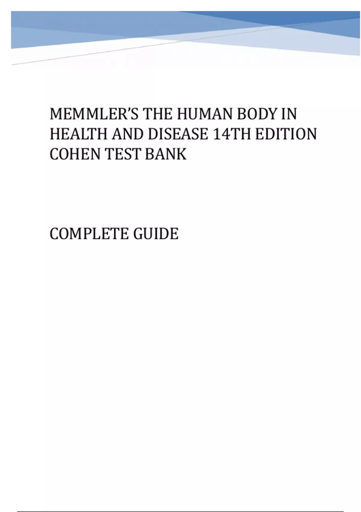 Memmler's The Human Body in Health and Disease 14th Edition Cohen Test Bank Memmler's The Human Body in Health and Disease 14th Edition Cohen Test Bank Memmler's The Human Body in Health and Disease 14th Edition Cohen Test Bank