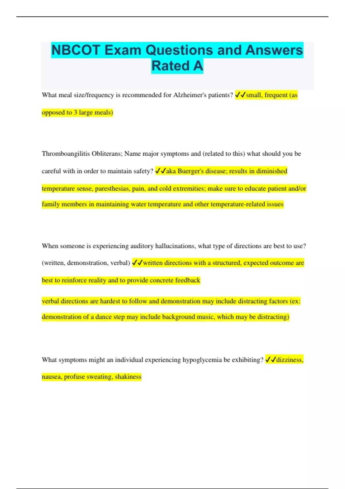 NBCOT Exam Questions and Answers Rated A