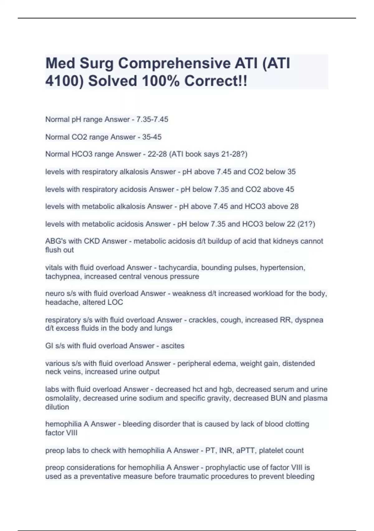 med surg comprehensive ati ati 4100 solved 100
