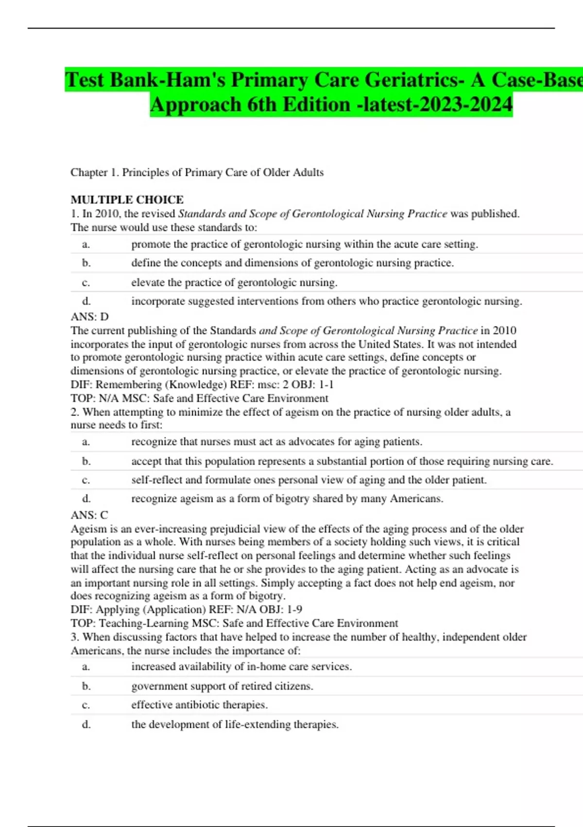 Test Bank-Ham's Primary Care Geriatrics- A Case-Based Approach 6th Edition -latest-.pdf ACTUAL EXAM