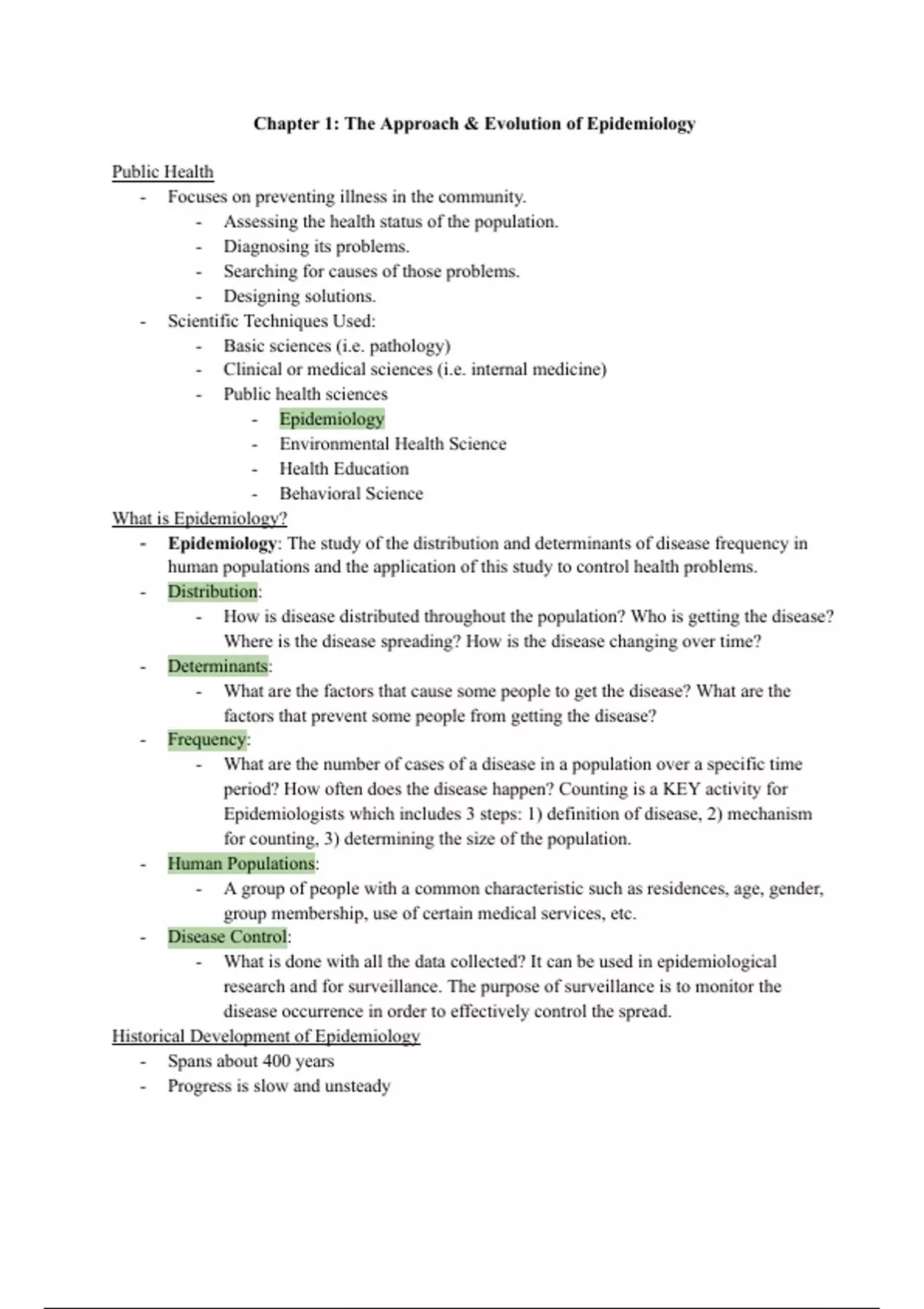 PHC4030 - Lesson 1, Chapter 1: The Approach & Evolution of Epidemiology