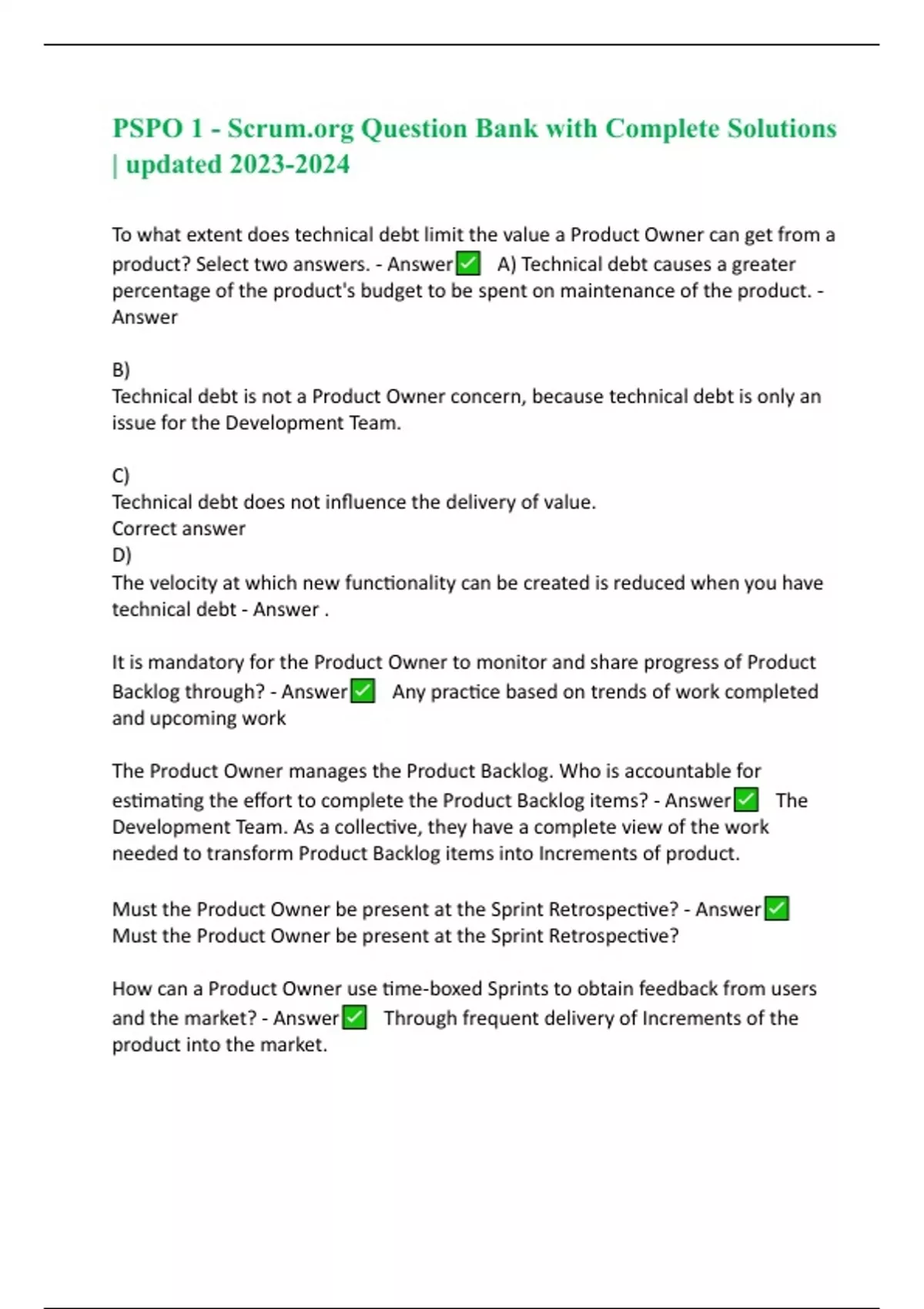 PSPO 1 - Scrum.org Question Bank with Complete Solutions | updated