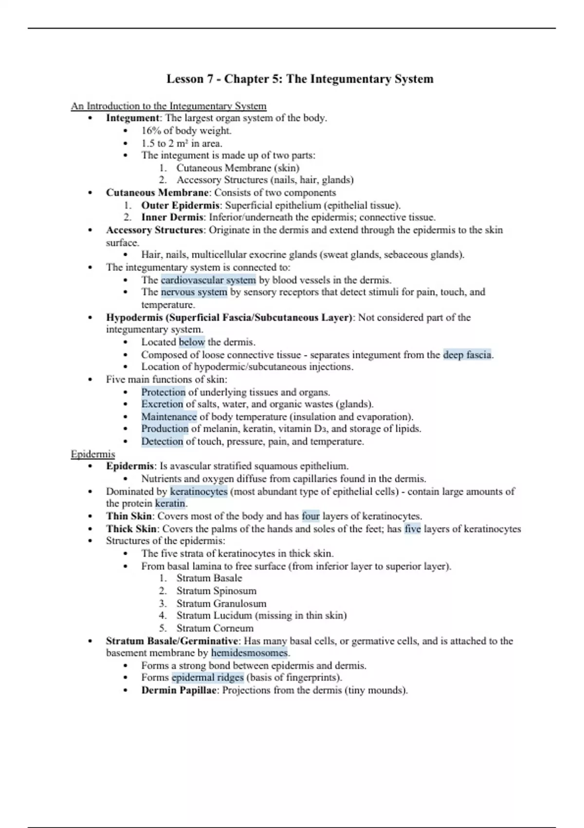 BSC 2085 - Lesson 7, Chapter 5: The Integumentary System