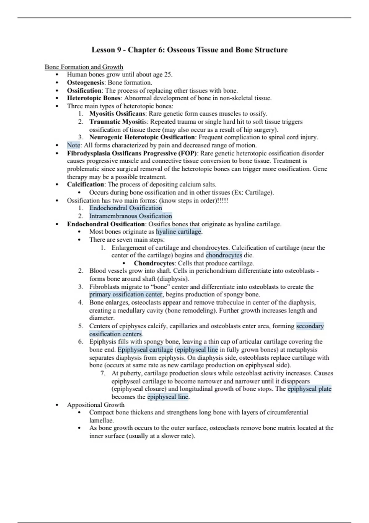 BSC 2085 - Lesson 9, Chapter 6: Osseous Tissue and Bone Structure