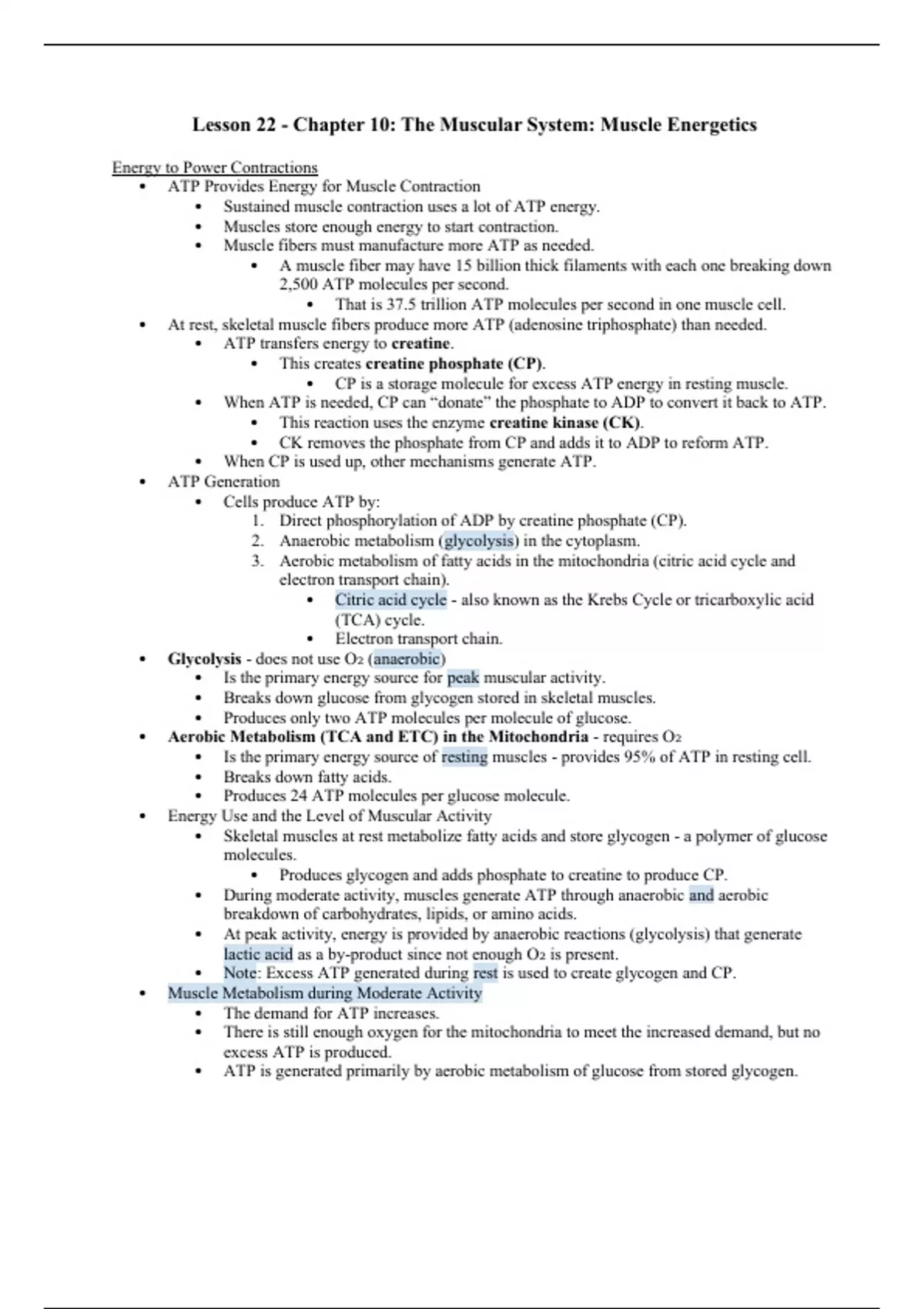 BSC 2085 - Lesson 22, Chapter 10: The Muscular System: Muscle Energetics