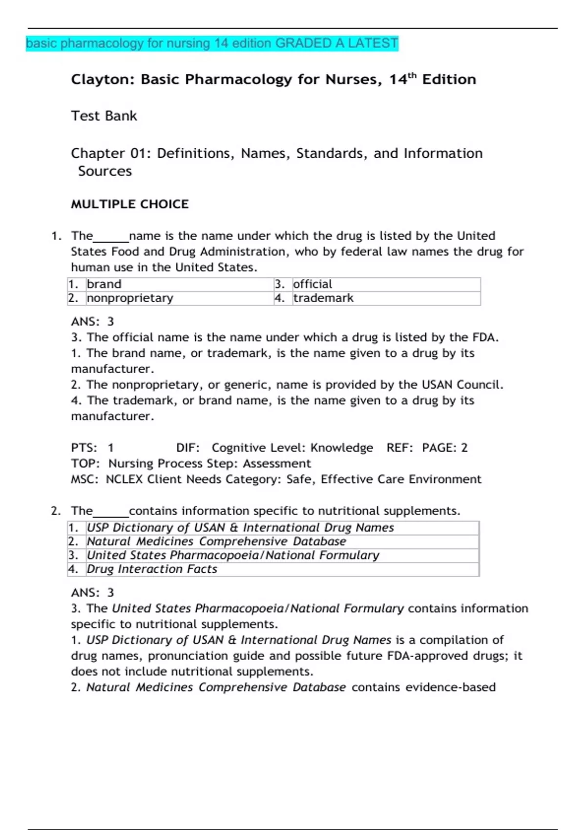 Chapter 02: Basic Principles of Drug Action and Drug Interactions Clayton/Willihnganz: Basic Pharmacology for Nurses, 17th Edition