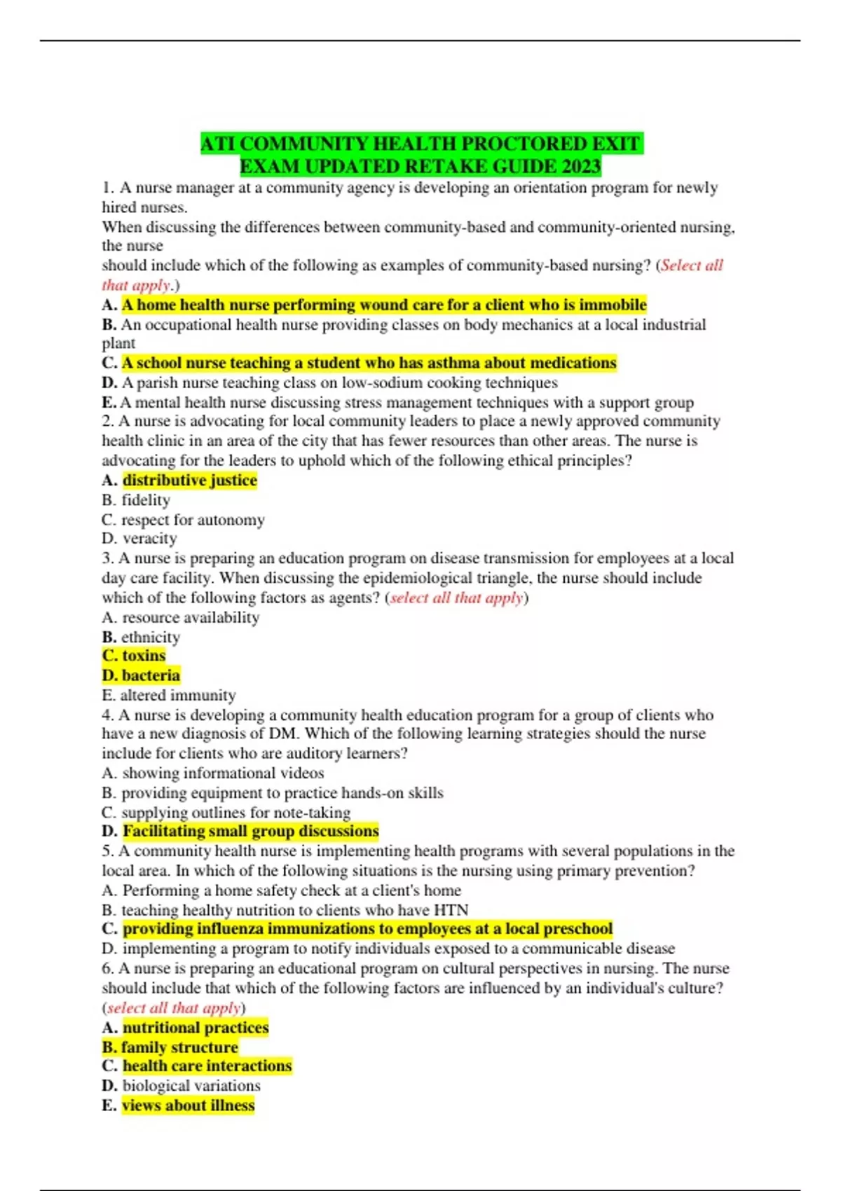 ATI COMMUNITY HEALTH PROCTORED EXIT EXAM UPDATED RETAKE GUIDE 2023