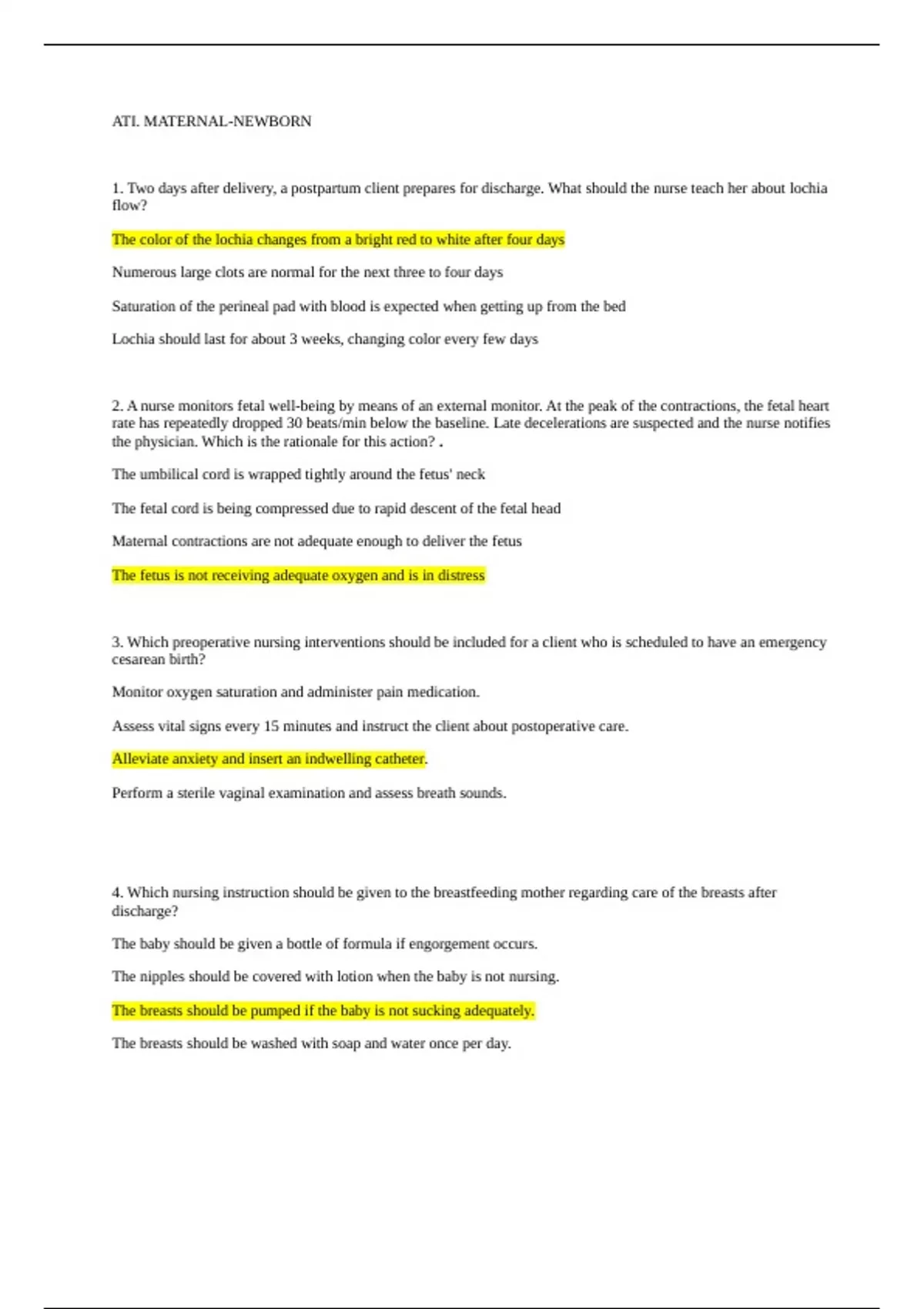 ATI Maternal newborn 2023(latest and updated)