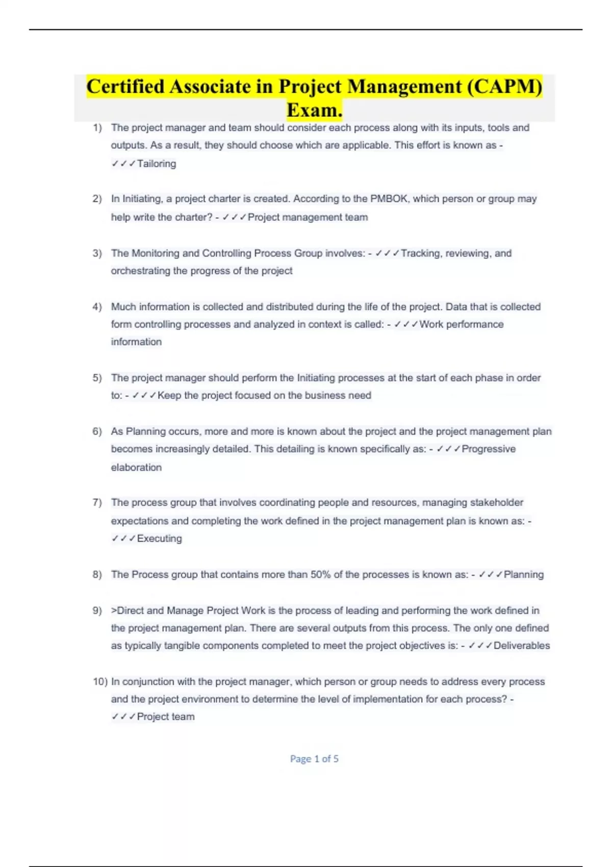 Certified Associate in Project Management (CAPM) Exam.