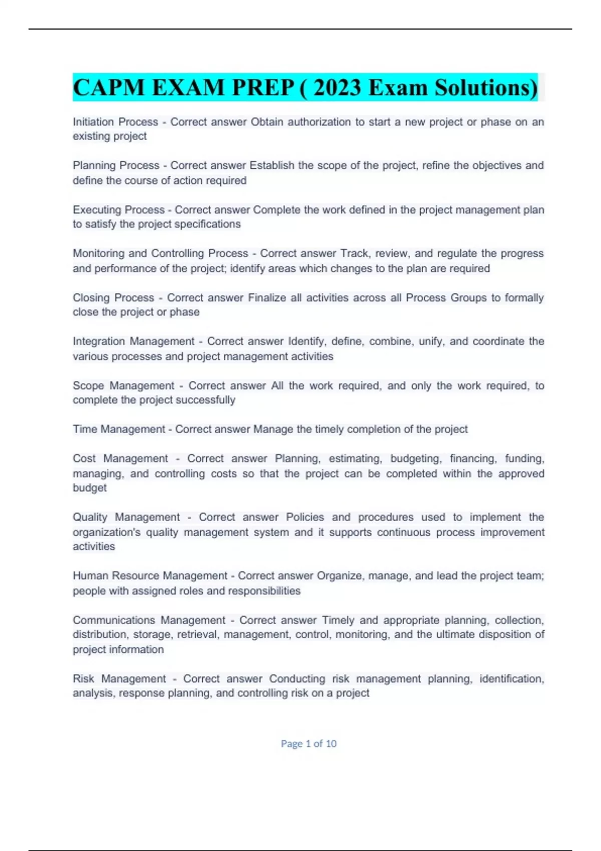 CAPM EXAM PREP ( 2023 Exam Solutions)CAPM EXAM PREP ( 2023 Exam Solutions)CAPM EXAM PREP ( 2023 Exam Solutions)
