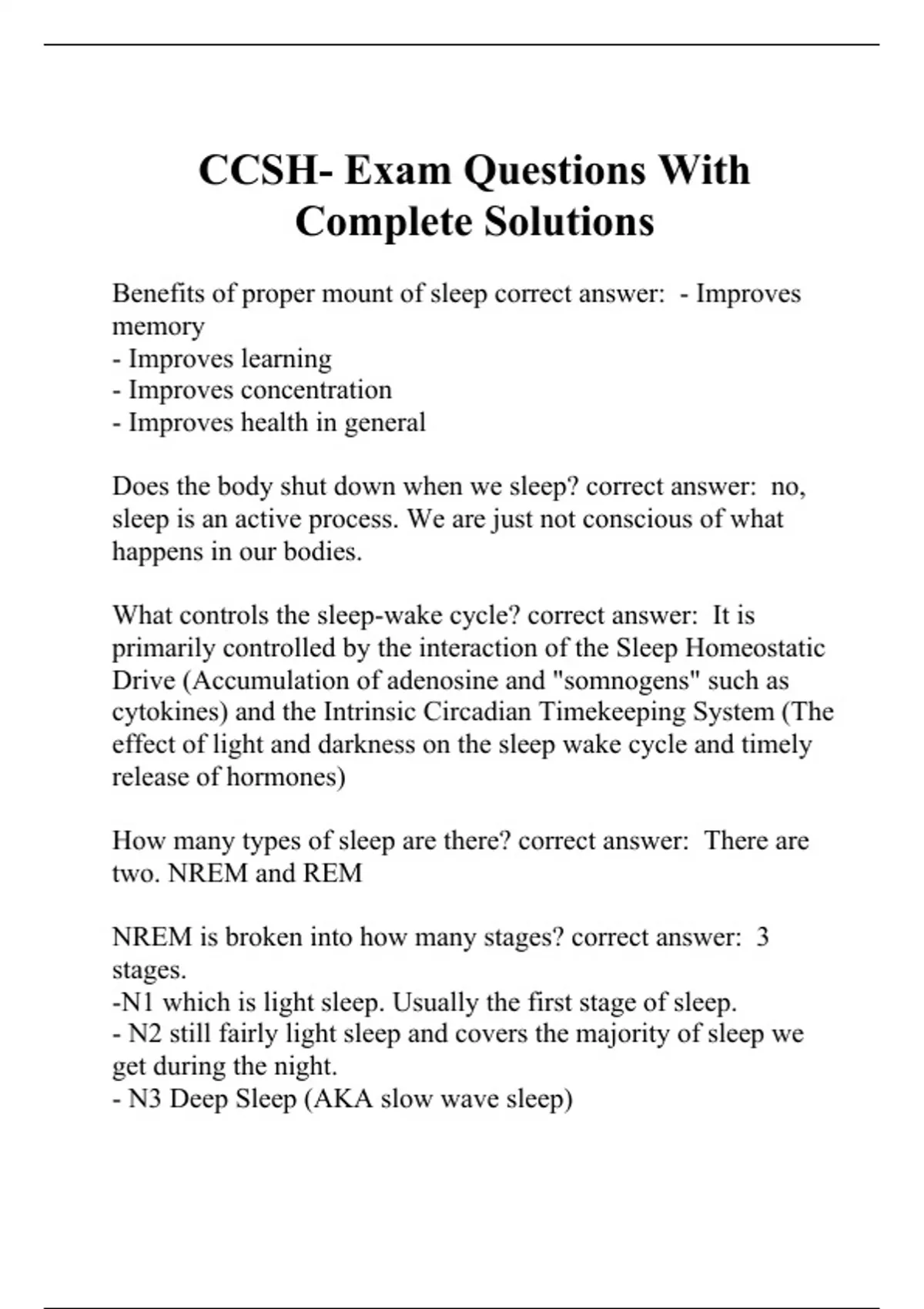 What is NREM sleep believed to be for? correct answer: NREM sleep is believed to help restore the body/