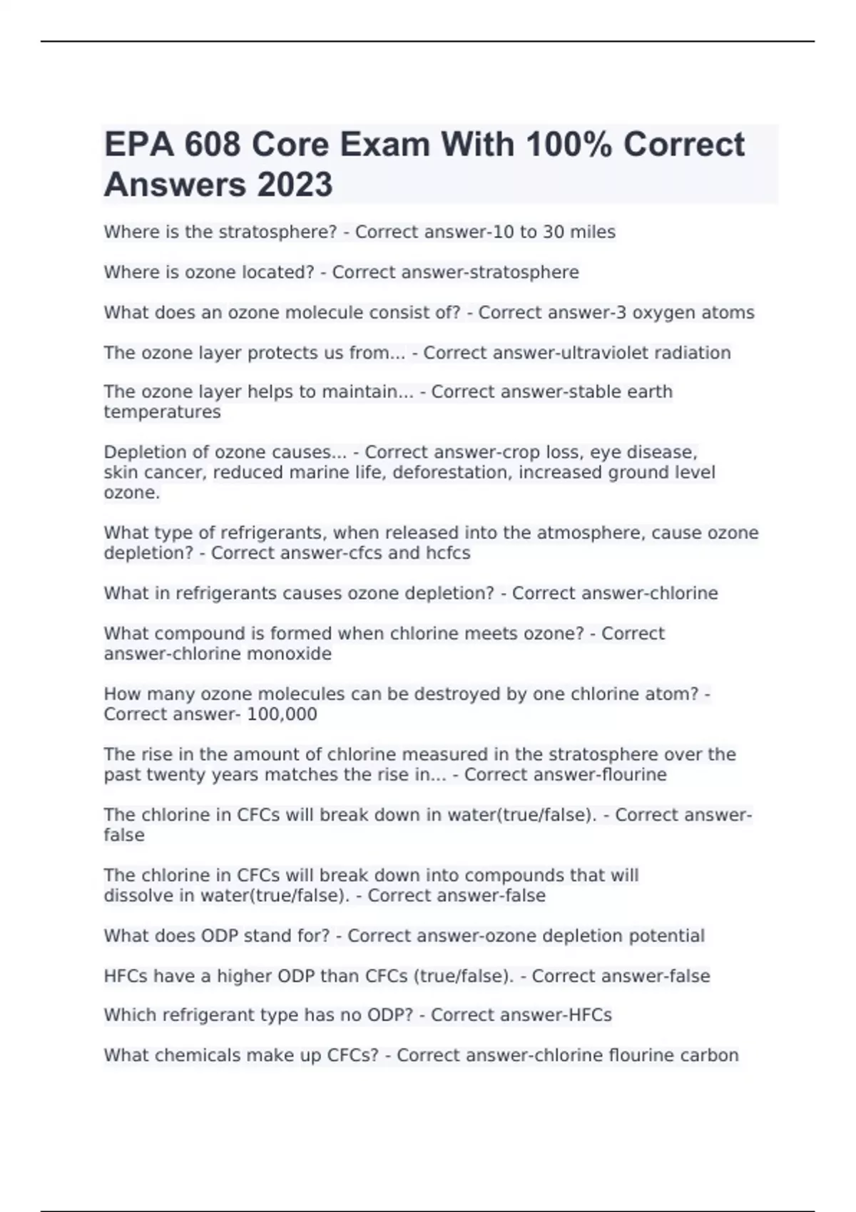 EPA 608 Core Exam With 100% Correct Answers 2023