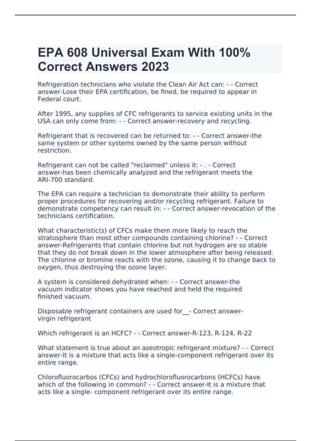 EPA 608 Certification Exam 2023/2024 Latest Update Complete Solution Package