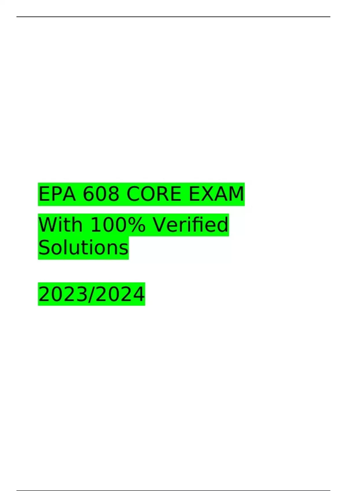 EPA 608 CORE EXAM With 100% Verified Solutions 2023/2024