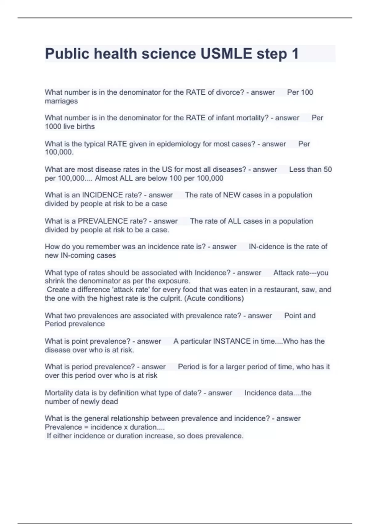 Public health science USMLE step 1 Questions with verified content 2023